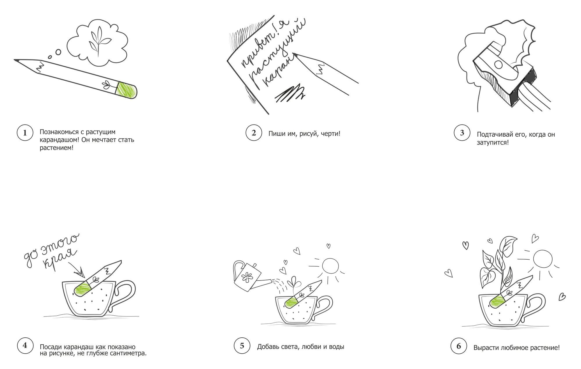 Так в чем же волшебство? Почему растущий? У каждого карандаша на кончике есть капсула. В капсуле находятся семена растений. Для начала, необходимо использовать карандаш: пишите, рисуйте, творите, работайте, и как только он сточится и станет коротким, поместите его капсулой в землю под углом не глубже, чем на один см, добавьте света, воды, немного терпения и любви! И совсем скоро Вас порадует новая зеленая жизнь. А что вырастит, зависит только от Ваших вкусов и предпочтений!